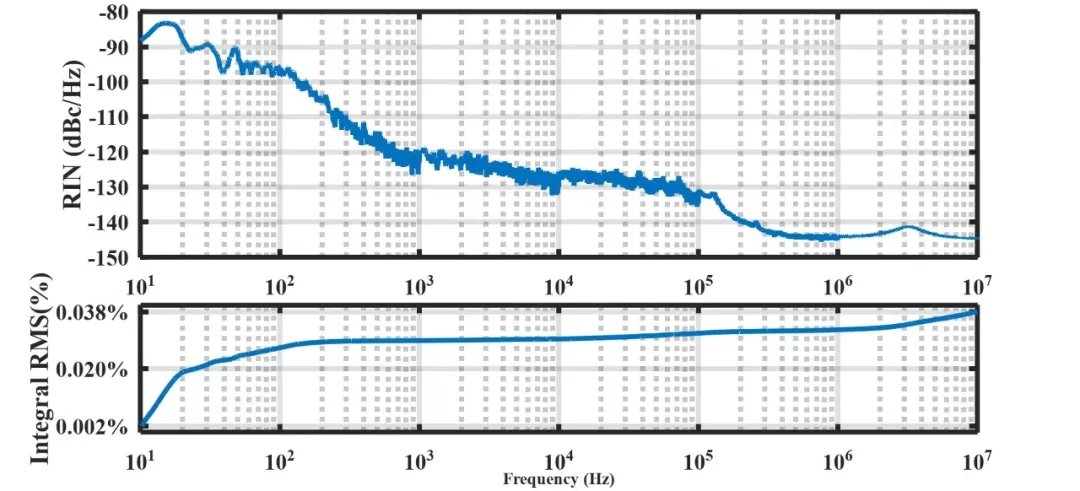 相对强度噪声:<-140 dBc/Hz@1MHz,同时保持极低的强度噪声(<0.04% RMS)与相位噪声。